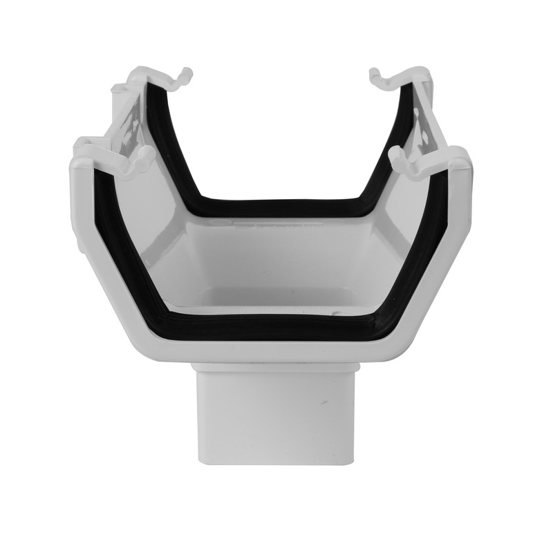 A 114 mm Square Line Running Outlet White is a drainage fitting that connects a surface water channel (114 mm square line gutter) to a downpipe or drainage pipe so water can flow out. It’s white and used in linear drainage systems to divert collected water into the drainage network.