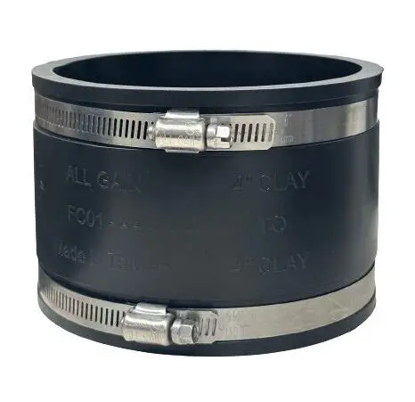 A pipe fitting used to connect two 4-inch clay pipes in drainage or sewer systems.