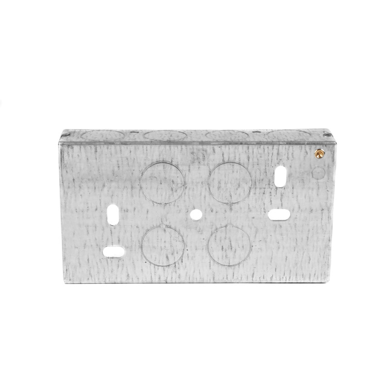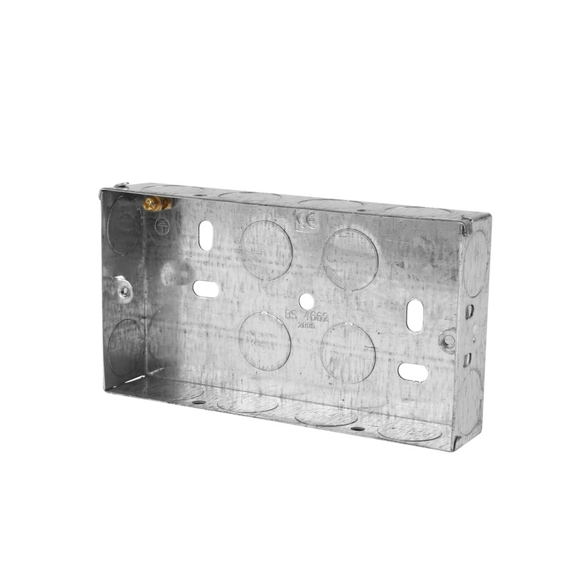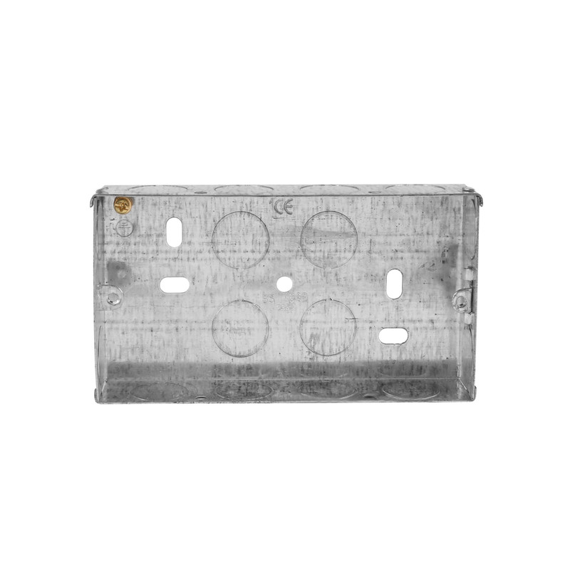 A Made4Trade Metal Back Box 2 Gang 25 mm is a shallow metal enclosure designed to sit in or on a wall and house two electrical fittings (like a double socket or two switches). It’s made from durable steel with pre-cut holes for cable entry and mounting tabs so you can secure and safely wire standard UK electrical accessories in a neat, compliant installation.