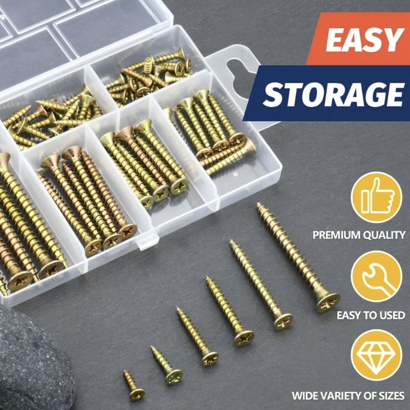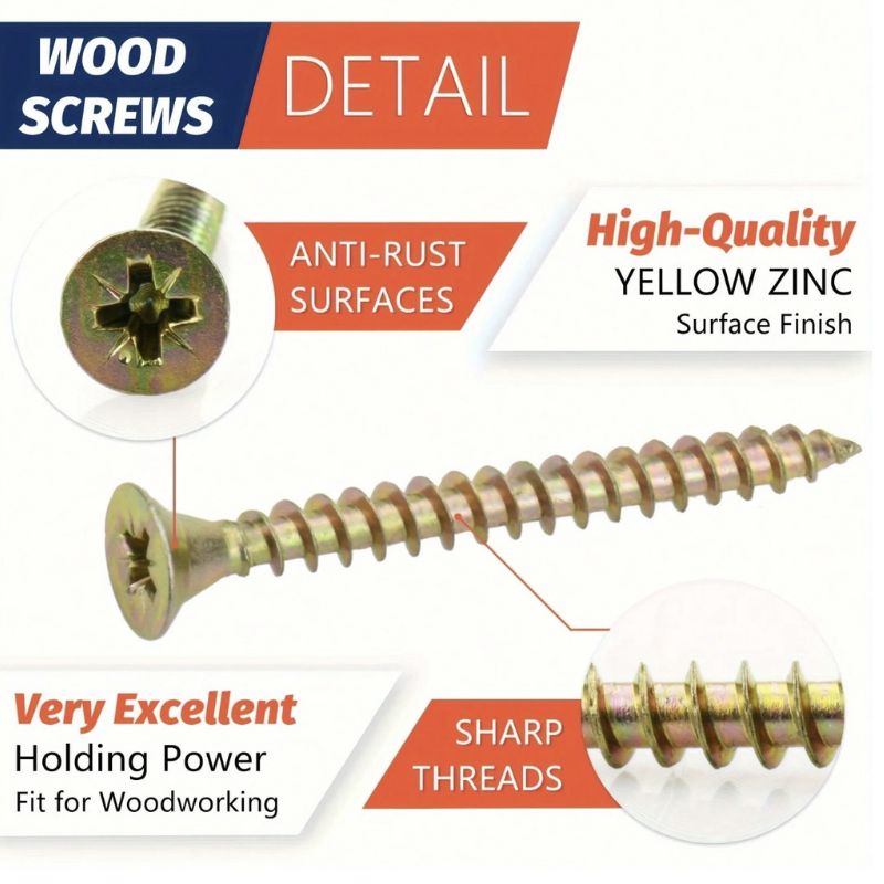 Fully threaded, sharp point, yellow zinc passivated for, Pozidriv (PZ2) countersunk head for clean finish in timber, chipboard and MDF. Ideal for stud walls, joists, skirting and second-fix work.